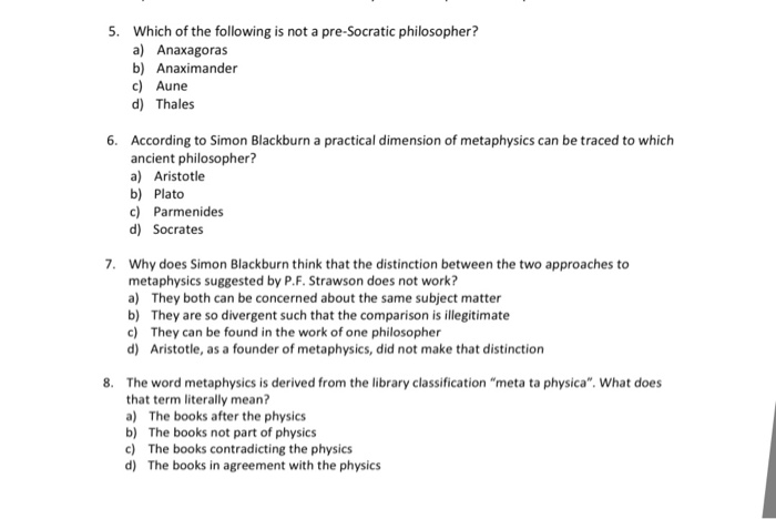Solved 5 Which Of The Following Is Not A Pre Socratic Chegg Com