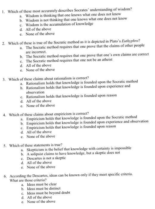 Solved I Which Of These Most Accurately Describes Socrates Chegg Com