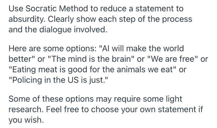 Solved Need Help Using An Example Of Socratic Method Please Chegg Com